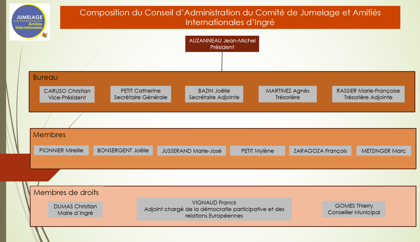 - assurer la pérennité des liens entre les habitants d’Ingré et des villes partenaires jumelées.